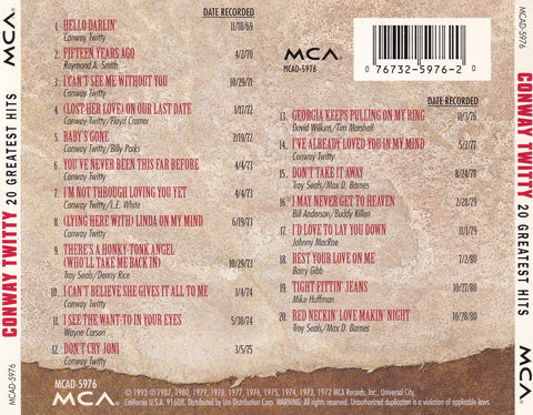 Conway Twitty - 20 Greatest Hits - CD Like-New, Risk-Free 30-Day Money Back Guarantee, with Free Shipping available.